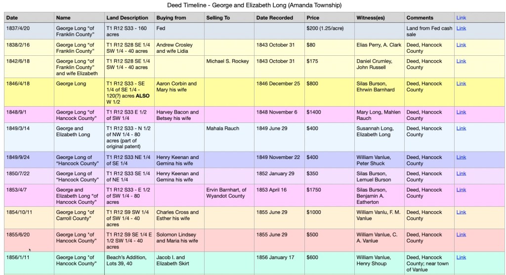 While working on my George Long project, I needed to disambiguate two George Longs in Hancock County, Ohio. One bought and sold land frequently in that county, the other owned one piece of land. (Can you guess which one mine was?)