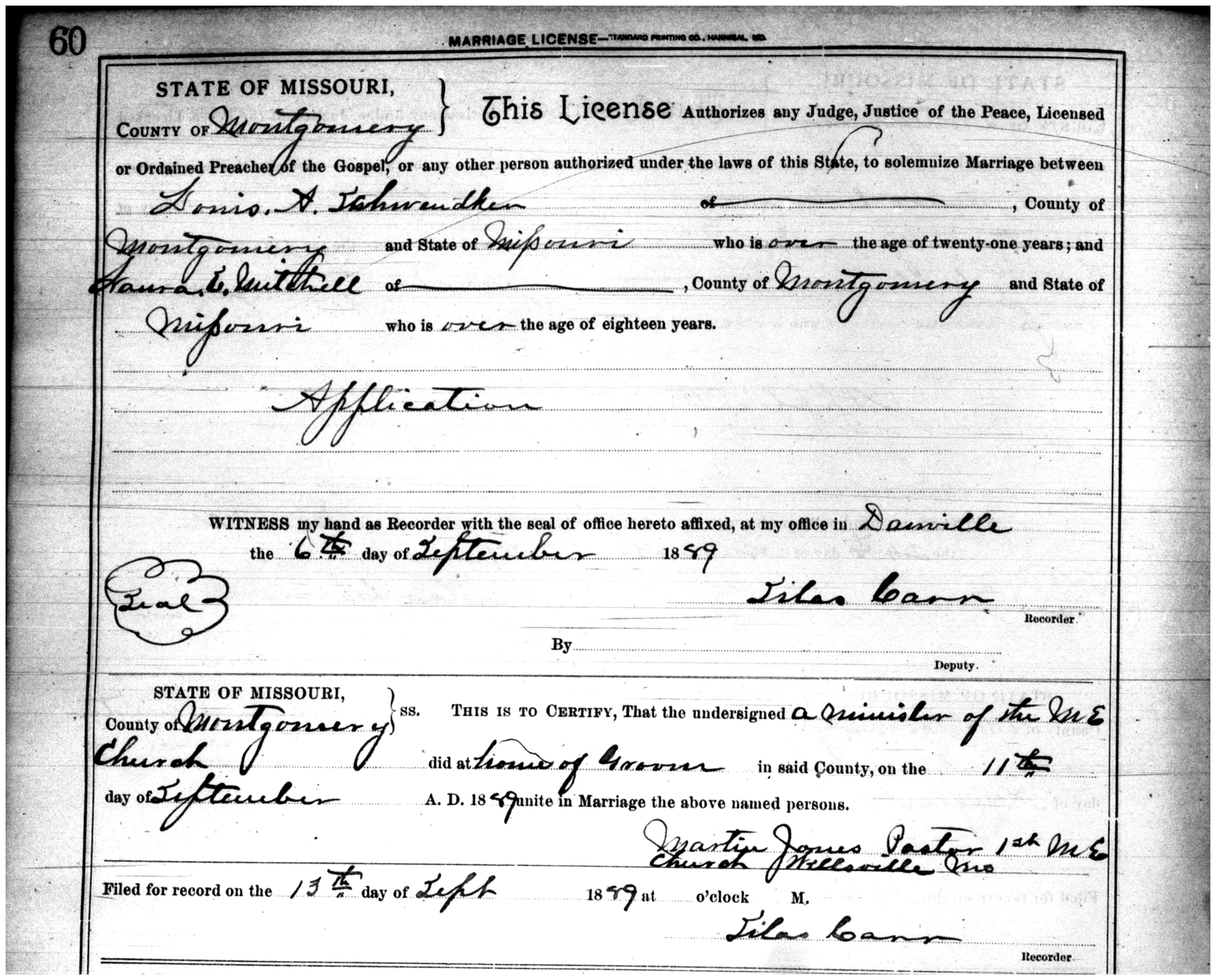 I feel as though I have confirmed Angeline Mitchell’s maiden name as “Higdon/Higden.” I have been trying to identify the children of Thomas C. and Angeline Mitchell for some time, with not much to go on. I had previously found a website that has transcriptions or extractions of Audrain County marriage books with citations and have extracted some Mitchell brides who I am hoping are the daughters of T.C. and Angeline. However, looking for them in the census has turned up very little so far, at least in Missouri.