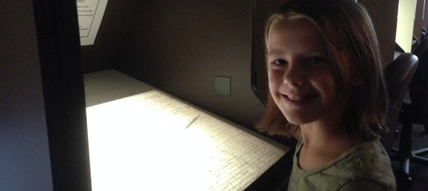 The staff people at the library just loved her! They’d offer help but she quickly demonstrated that she knew what she was doing and even helped other patrons as the week went on. The scanning section has a tall desk in the middle where you stand to scan and then seated scanners along the perimeter. When she was at a standing scanner, she was a little short (but still able to work the machinery). About mid-week they found her a stool and would bring it out for her when she came up to the scanners. On Friday of our week there, the Family History Library staff asked if they could have someone interview my daughter. She was great! Loved having the photos taken, loved talking to the couple who came to interview us. You can read the article here: Family History Blog.