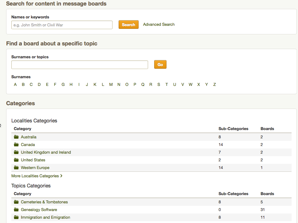 The US GenWeb covers all 50 states, at the state level and then with sites specific to most counties. The World GenWeb is similar in that it is broken down by region, country and then county, providence or other civil district type. Another website that is similar in structure is called Genealogy Trails and is dedicated to “keeping genealogy free.” It too is broken down by state and county. Both of these are run completely by volunteers and they are all constantly in need of people willing to maintain them.