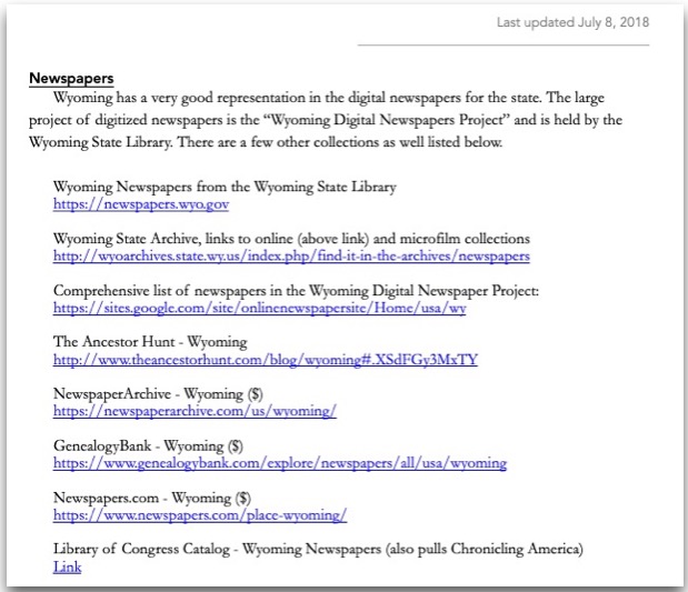 I’m going to start a new series with this post, about researching in one of my favorite states: Wyoming. We moved to Wyoming from Ohio when I was 14. I went to high school and college there. I met my husband there. He was born there. And now, my daughter is about to start attending the University of Wyoming this semester. So, Wyoming is a special place for me and my family. I also created a locality guide for the state (I don’t recommend doing a guide for an entire state, but that’s another story.)