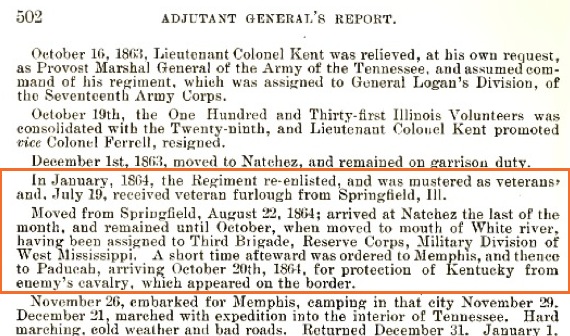 It appears that Sanders only served for about a month from August to September 1864. The AG report also gives some description of what the company was doing during that time: