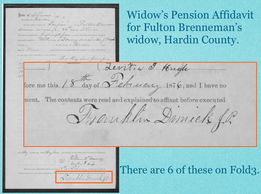 Franklin Dimick was a Justice of the Peace in Hardin County! (This information leads to an interesting find that I will share in a future post.)